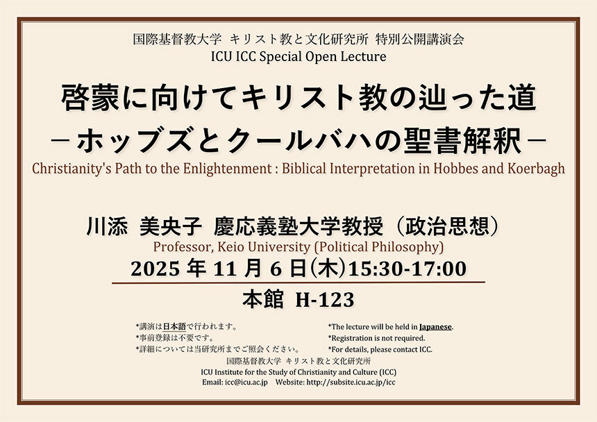 | Contact point | Institute for the Study of Christianity and Culture icc@icu.ac.jp |