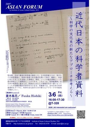 The 209th Asian Forum, "Scientists' archival materials from modern Japan: Exploring new approaches to the cultural history of science"