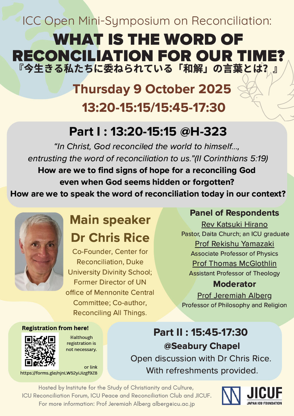 October 9Thursday ICC特別公開講演会:今生きる私たちに委ねられている「和解」の言葉とは?