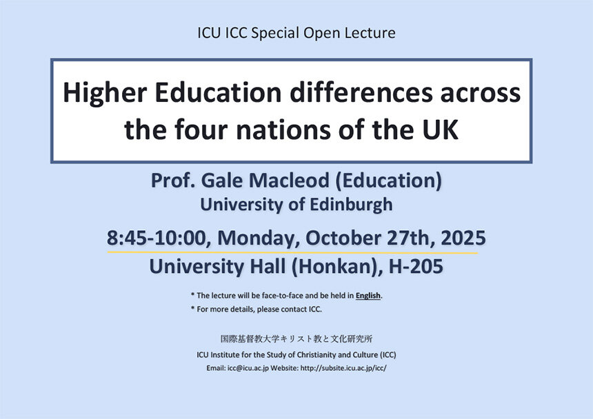 October27Monday ICC特別公開講演会:Higher Education differences across the four nations of the UK