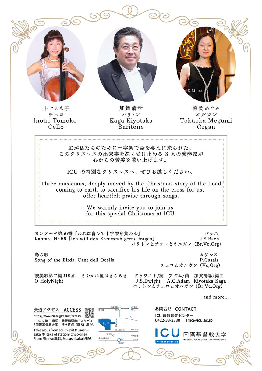 | お問い合わせ | TEL: 0422-33-3330 e-mail: smc@icu.ac.jp |