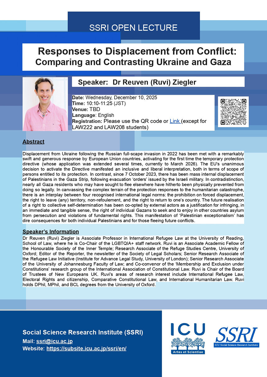 December10Wednesday [SSRI公開講演 12/10] Responses to displacement from conflict: comparing/contrasting Ukraine and Gaza