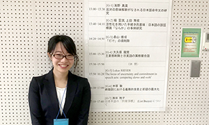 11月25(土)と26日(日)に立命館大学衣笠キャンパス(京都市北区等持院北町)で開催された日本言語学会第155回大会で、本学の浅野真菜さん(教養学部4年)が口頭発表を行ないました。 浅野さんは、卒業論文の研究テーマである「反対の意味解釈がなされる日本語命令文の研究」について発表しました。この研究は…