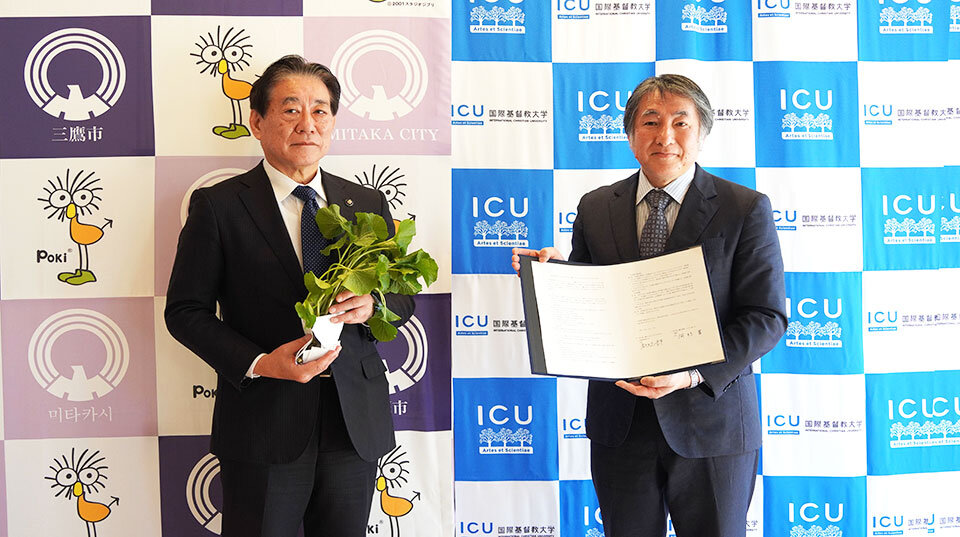 3月5日(木)、三鷹市と本学は、包括的連携協定に基づく取り組みの一環として、本学敷地内わさび田における「三鷹大沢わさび」のさらなる保全・活用に向けた覚書を締結しました。