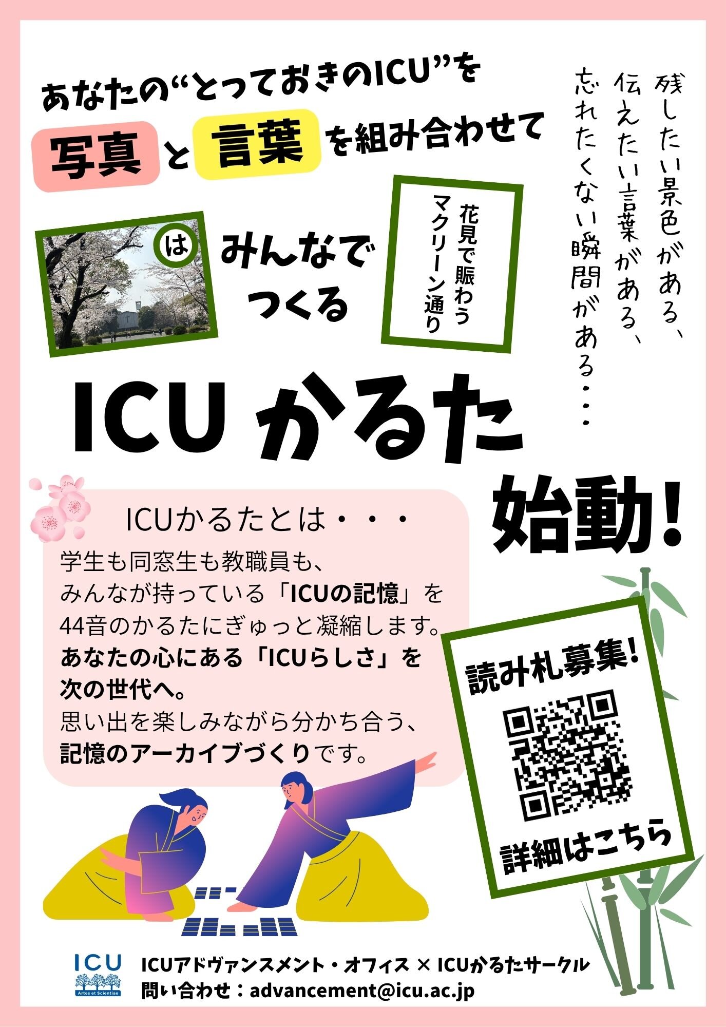 | 問合せ先 | ICUかるたプロジェクト事務局 advancement@icu.ac.jp |